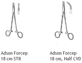 Adson forceps are used for handling delicate tissue. They are regularly used in exploratory surgery for gently moving tissue or for holding it during the suturing process. You would expect to find the instrument in sets for procedures such as appendectomy and biopsy