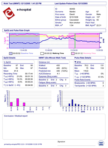 %SpO2 and Pulse Rate (Min, Max, Average), Test duration, Total SpO2 Events, T90% (SpO2 time ≤89%), T89% (SpO2 time ≤88%), T40 (Bradycardia duration with Pulse Rate <40 BPM), T120 (Tachycardia duration with Pulse Rate >120 BPM)